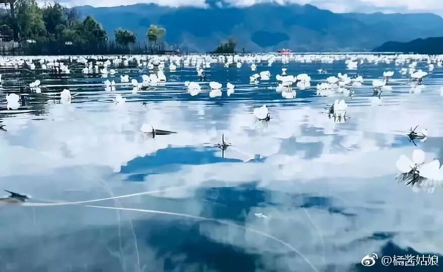 好似白色天使的小花,独自飘零,一眼望去,就像一条会开花的湖,这便是泸沽湖有名的奇景:水性杨花。