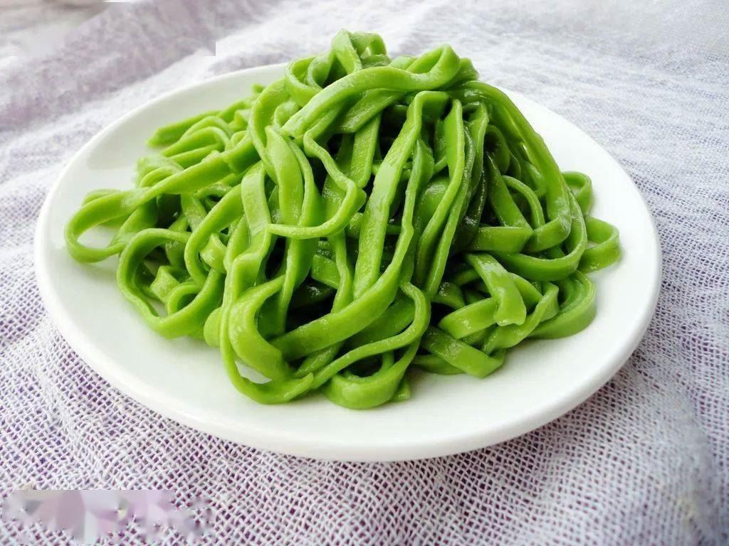 高筋粉200g,生粉100g,菠菜汁550g,食用油50g