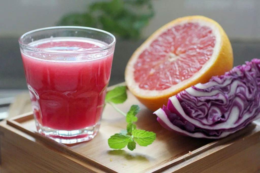 紫甘蓝芯1/4个,卷心菜芯1/4个,小红萝卜2个,梨1/2个,葡萄柚1/2个,去核樱桃10个