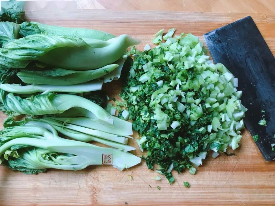 3.加入新鲜的芥菜,切碎,加入适量的盐,食用碱,一起搅拌均匀,放入炒锅中,炒至浓稠即可;