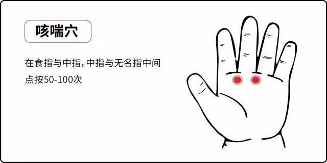 可单独按揉咳喘穴5分钟,然后再按咳喘新穴,也是5分钟,左右手都要按。按揉时力度要大一些,最好能感到酸痛。当然,如果您有方法能同时按摩两个穴位,也可以同时按摩。