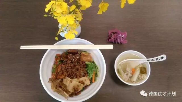在用餐期间,还会有义工举着一个“请止语”的牌子示意大家吃饭时,要遵守“食不语”的古训。