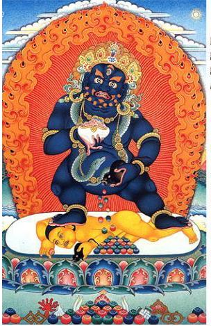 2、静坐观想黑财神降临,黑财神放黑光。财神皆忿怒相。