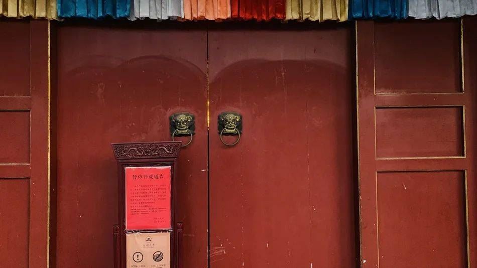 图为1月6日,大开元寺在山门张贴“暂停开放通告”。