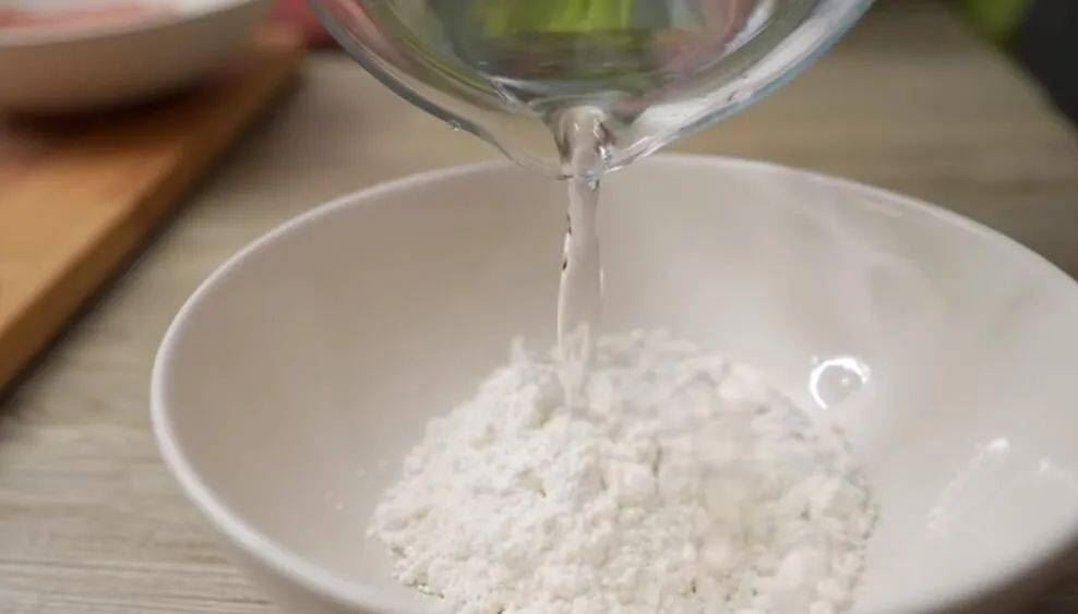 3.将面粉+水混合后调制成面糊