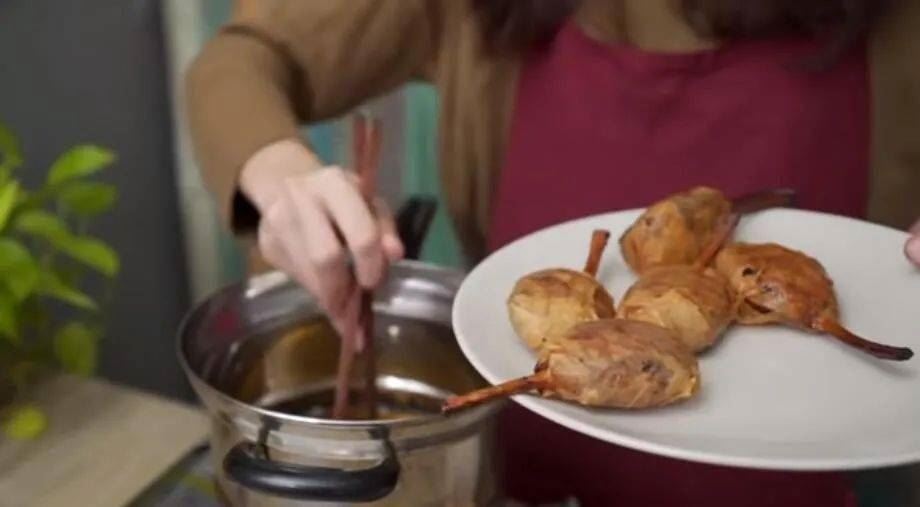 14. 包裹酱汁的棒棒腿取出后装盘!