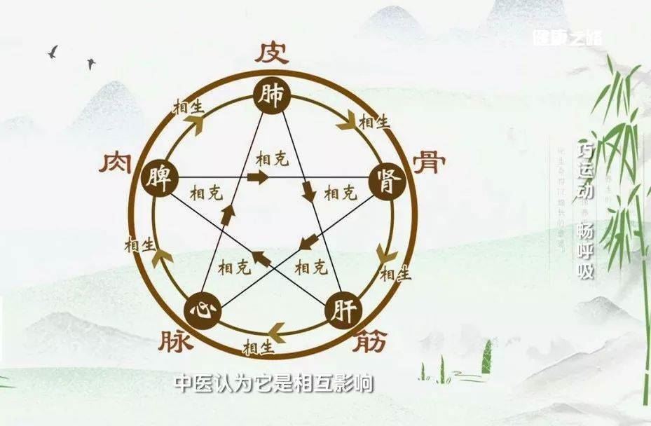 五脏即心肝脾肺肾,五体即脉筋肉骨皮。脉通于心;筋通于肝;肉通于脾;肺通于皮毛;骨通于肾。人在呼吸时,不仅肺脏在运动,全身的毛孔也在帮助呼吸。正如:骨骼与肾相连,关节不好或骨质疏松时要补肾。