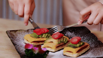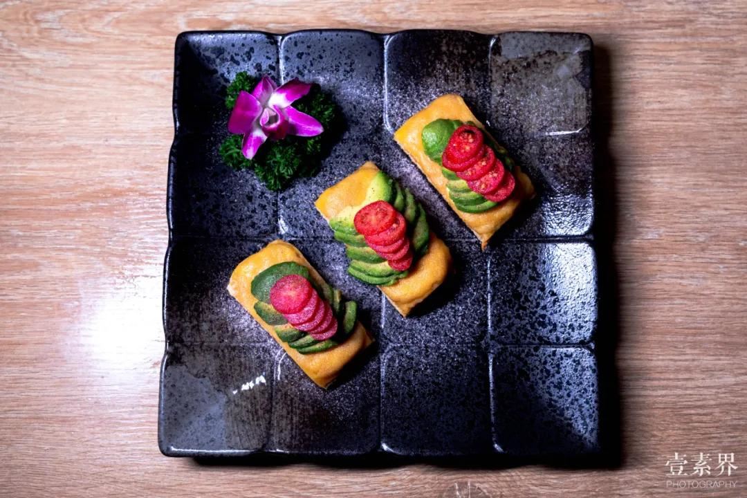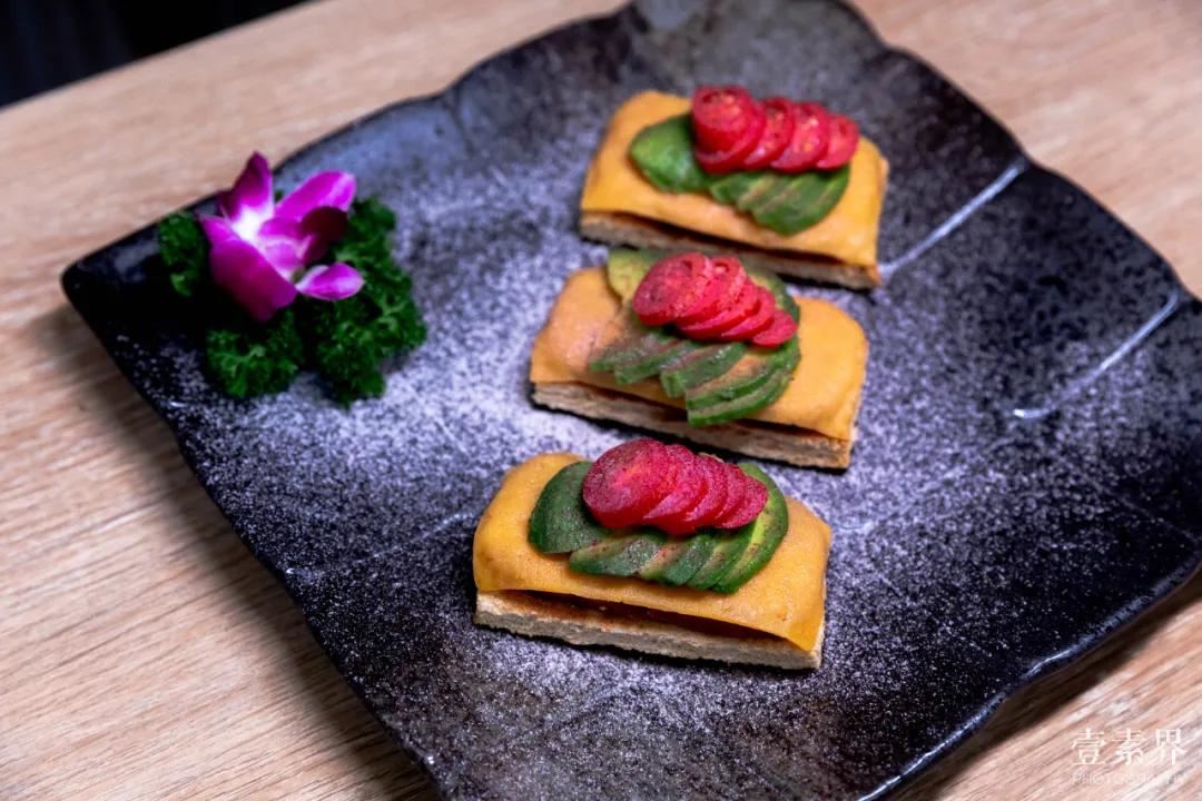 “烤面包很酥脆,和素午餐肉加到一起既可以解腻,又能够定型,而芝士片有一种酸香味儿,牛油果十分有营养,搭配红色番茄样子也是非常好看。