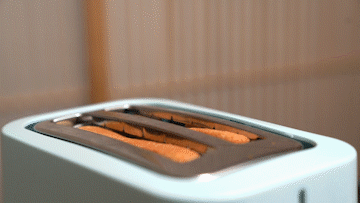 拿出准备好的两片面包放入烤面包机中,大火将面包烤至两面金黄,放一旁备用。