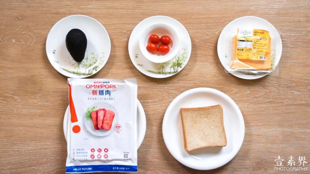 OmniPork素午餐肉、素全麦面包、纯素芝士片