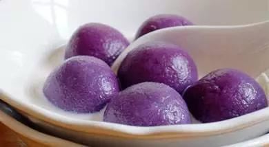 2.用糯米粉、温水和紫薯泥一起和面,制成等大的剂子。