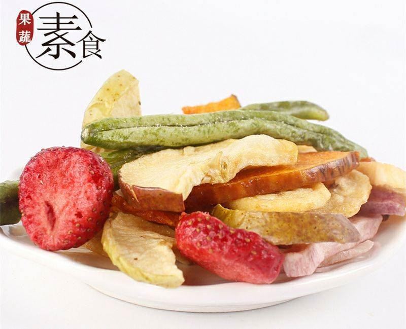 果蔬脆除了原料外,只添加了植物油,食用盐和麦芽糖,没有添加其他的化学成分和防腐剂,可以称得上是天然健康零食。