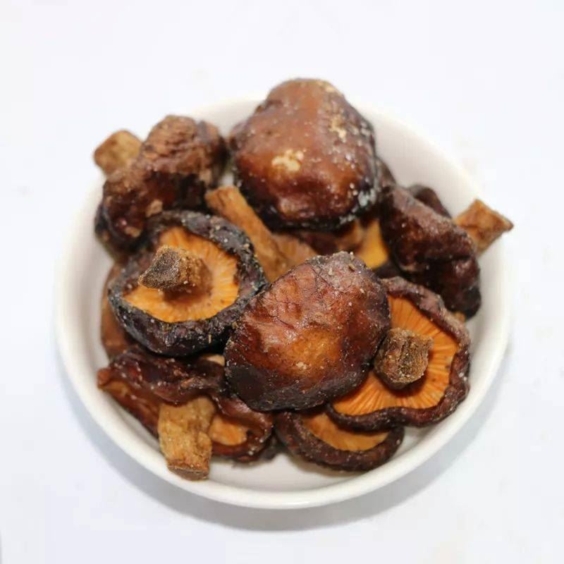 配料:新鲜优质香菇,植物油,食用盐和麦芽糖,低温冻干制成。