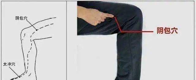 1、轻敲3-5遍后,在大腿内侧的“阴包穴”会有强烈痛点,可进行点揉。