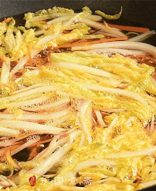 白菜、胡萝卜、香菇都切丝待用