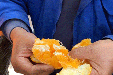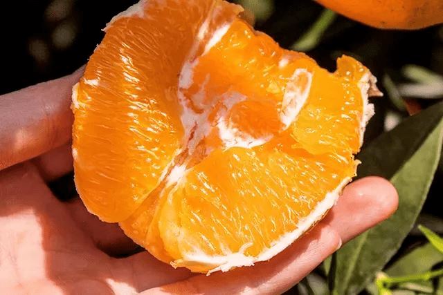 看这橙子的果粒,粒粒饱满莹润, 这可是刚刚摘下树的果子,由内而外散发着一股子新鲜劲儿!是皱巴巴、无味无汁的冷库橙无可比拟的!