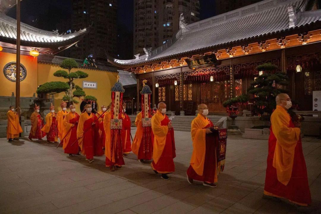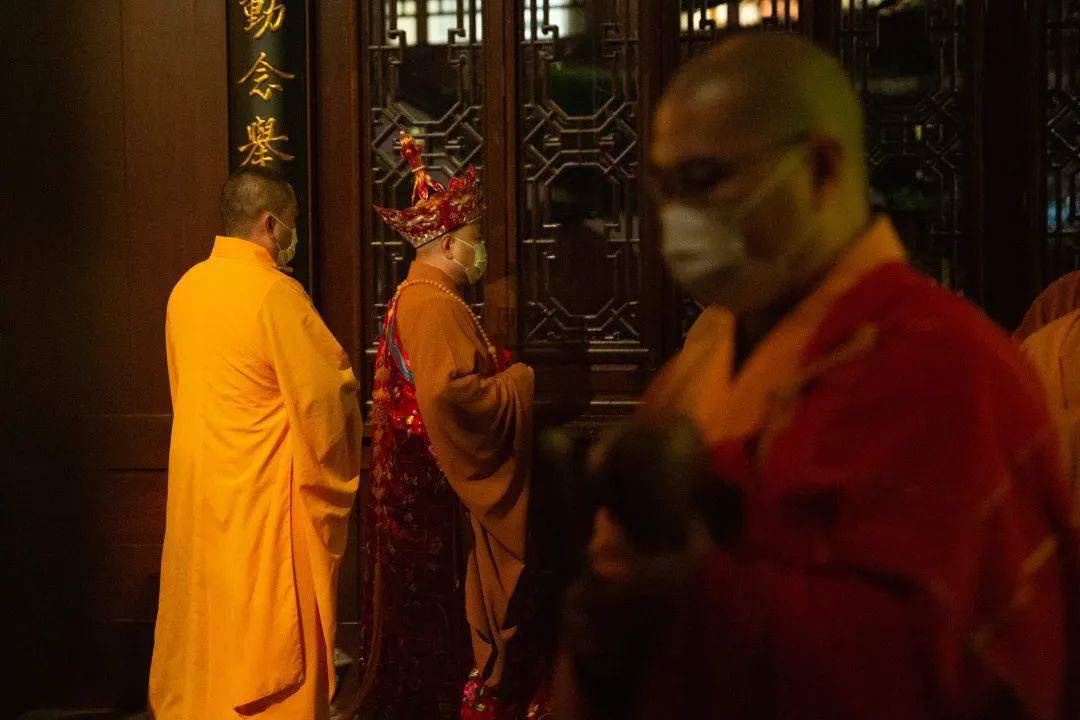 凌晨三时三十分,玉佛禅寺水陆法会内坛檀香清远、梵音阵阵,内坛结界仪式正式开启。