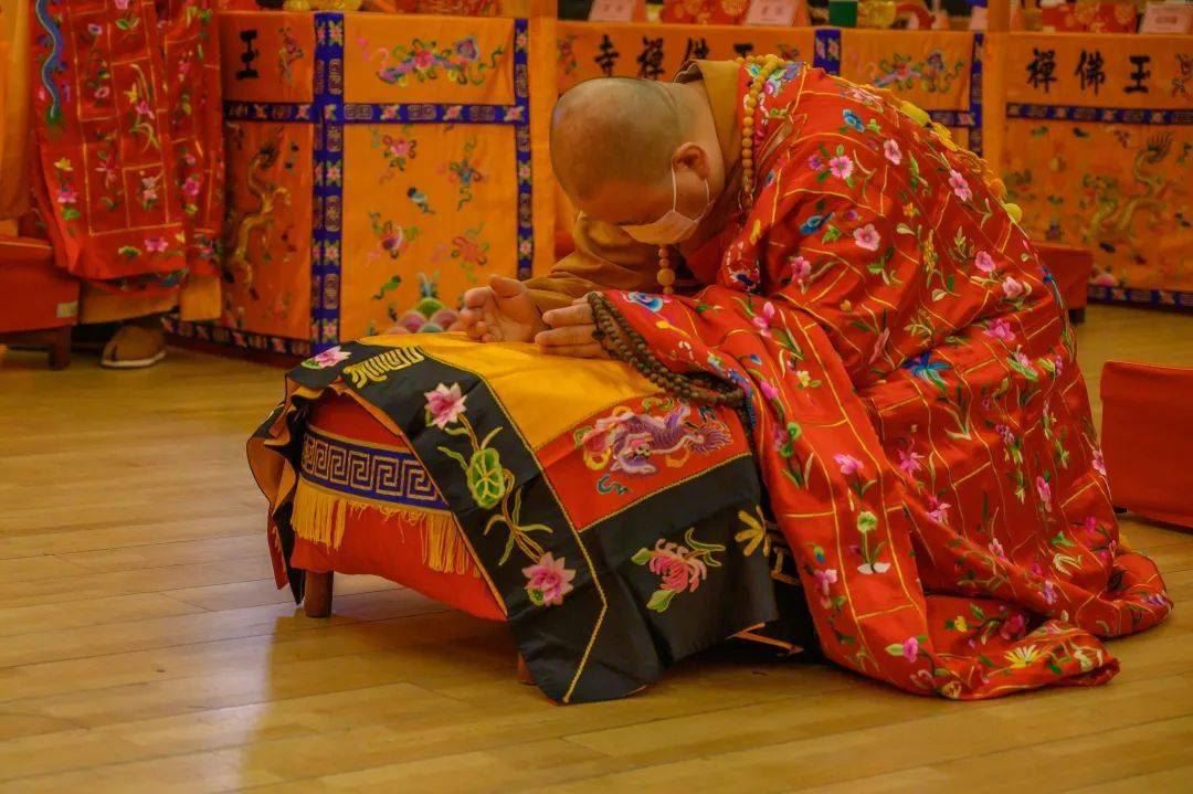 两序大众礼请中国佛教协会副会长、上海玉佛禅寺方丈觉醒大和尚主法,带领众斋主念诵经文、举诵梵呗,秉持正念,用心作观。