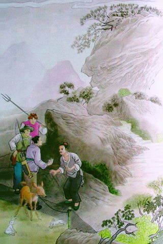唐朝慧能大师,是禅宗第六代祖师,既经黄梅山五祖弘忍禅师,传受心印,承受衣钵后,因有恶人寻找追逐,因此仍旧穿着俗服,隐避在猎人队中打猎,因六祖打猎无心,就命他看守猎网,六祖每见猎人不在时,就将网内獐兔等类走兽,尽量放它逃生,如此经过十六年,所放物命,难以计数。