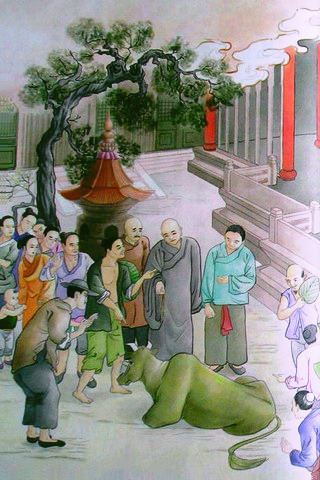 于是,大师便摆设香坛,精诚祈祷,甘雨果然立刻下降,人民兴高采烈,远近居民,多受感化。