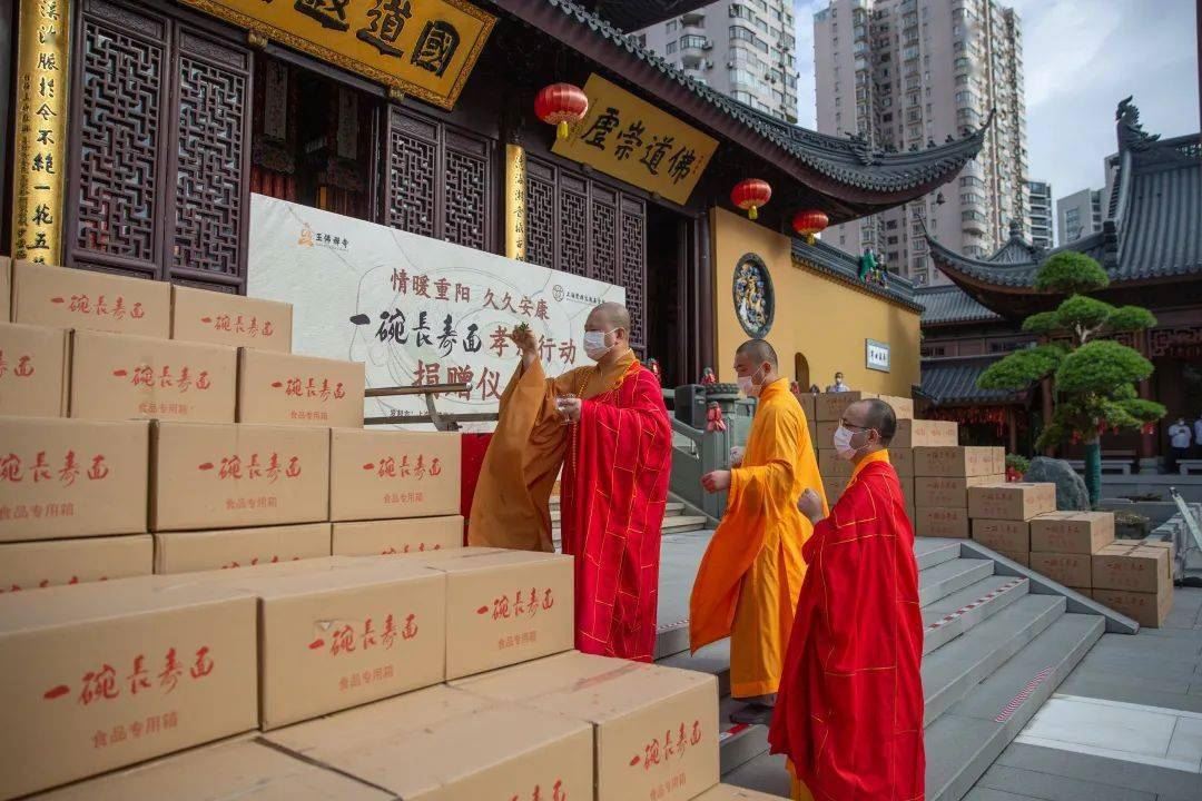 2021年“九九重阳”佳节之时, 爱心人士黄悦和支持玉佛禅寺的十方善信发心加入“一碗长寿面”公益行动,从重阳节起至今,已经陆续为沪上十万余位长者送出了这“一碗长寿面”。