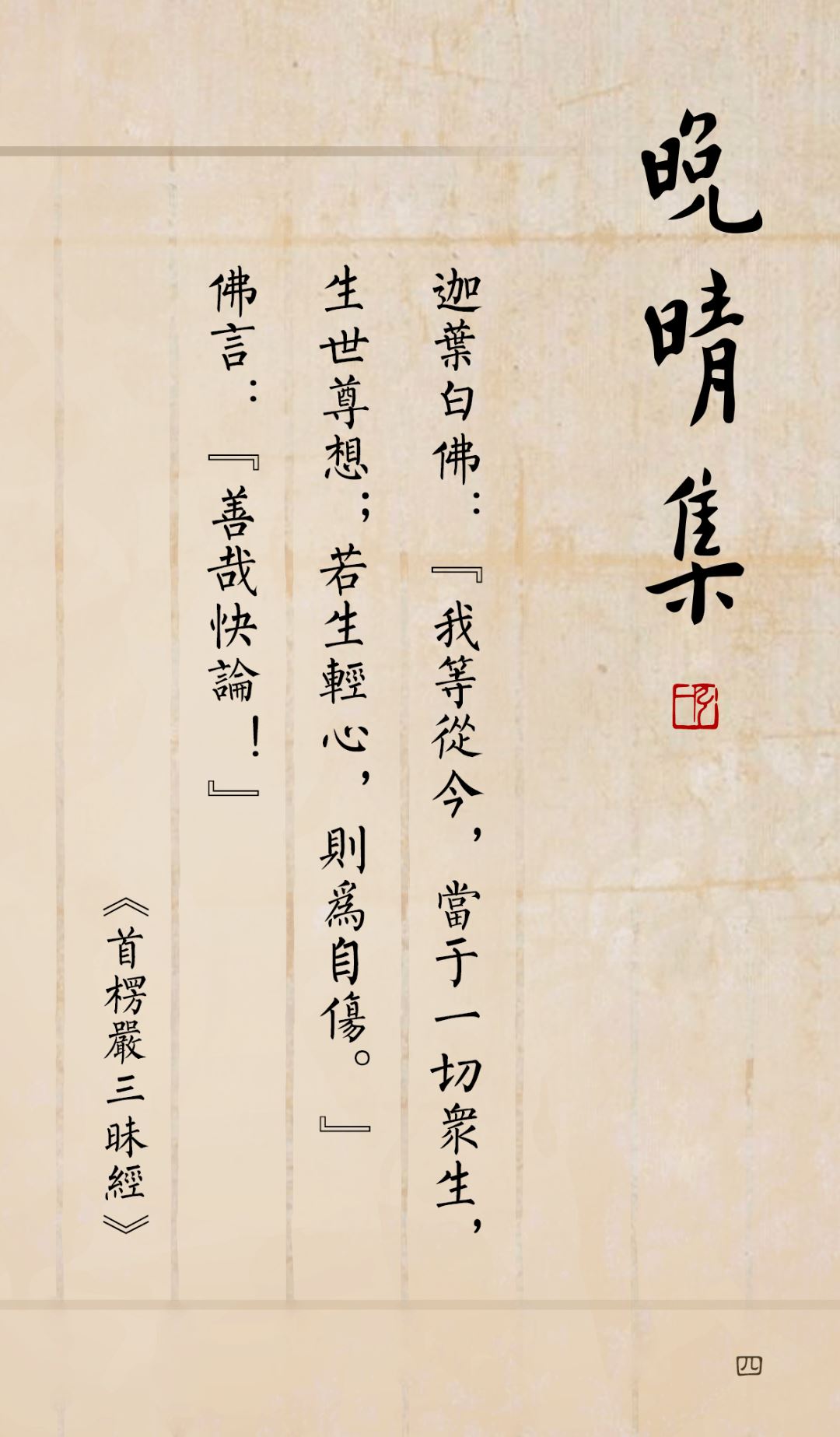 《晚晴集》乃弘一法师1941年夏,掩关福林寺时所辑,集佛经、祖语、警句101条,“以华严为境,以四分律为行,导归净土为果”,可谓融贯弘一法师毕生佛学之精髓。故将其整理成系列图集,以飨读者。