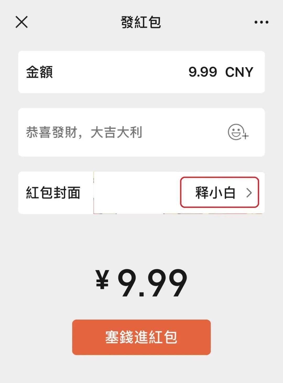 第三步:红包封面选择“释小白”