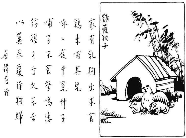 此图中的母鸡,在母犬出去觅食时,以爱心照顾小狗,这“幼吾幼以及人之幼”的精神,出自孟子所言。孟子劝梁惠王实行王道仁政,基本要求即是“老吾老,以及人之老;幼吾幼,以及人之幼”。