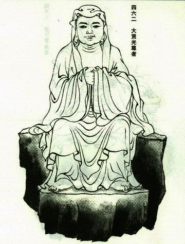 大贤光尊者,即贤光菩萨,贤劫十六尊之西方四尊之一贤护,密号护巧金刚、离垢金刚。居西方阿弥陀世界,为阿弥陀佛前之智慧弟子。