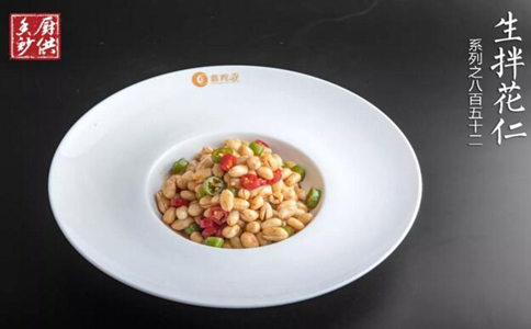 2、将花生、青红美人椒倒入容器中,调入以上调料拌匀装碟即可。