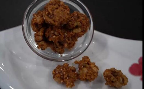 1.净锅上火,注入植物油,倒入核桃仁后,进行低油温浸炸,待核桃仁飘起来后捞出沥油。