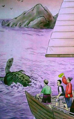 次日,雇一小舟,选命诚实可靠的方姓仆人,载到海口放生,鼋体似乎又忽然变得很轻,两人便可抬走。