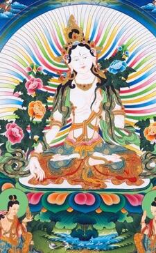 可以这样说,佛教,佛教有财神,但是我们很多佛弟子,知道有财神都是民间的财神,观世音菩萨用慈眼,慈悲的关照娑婆世界的一切众生,她发现有很多想学佛想修行的人,吃不饱穿不暖不要说是修行了,所以观世音菩萨当时一慈悲流了眼泪了,流了眼泪了,一滴眼泪掉下来,啪啦噌,一尊白色的像观世音菩萨一样的,叫白财神。为什么呢?就是这种缘起,悲心当中升起的要为一切众生提供资具,资粮,这就是一种缘起,所以他的一滴眼泪化现出来的,一尊白色的像观世音菩萨一样的那个,叫白财神。懂吗?我们要知道佛教当中还有一个黄财神,还有一个财宝天王,佛教当中都有他们的心咒仪规和行法,他们发愿就是,为一切受苦受难的众生提供财富的。